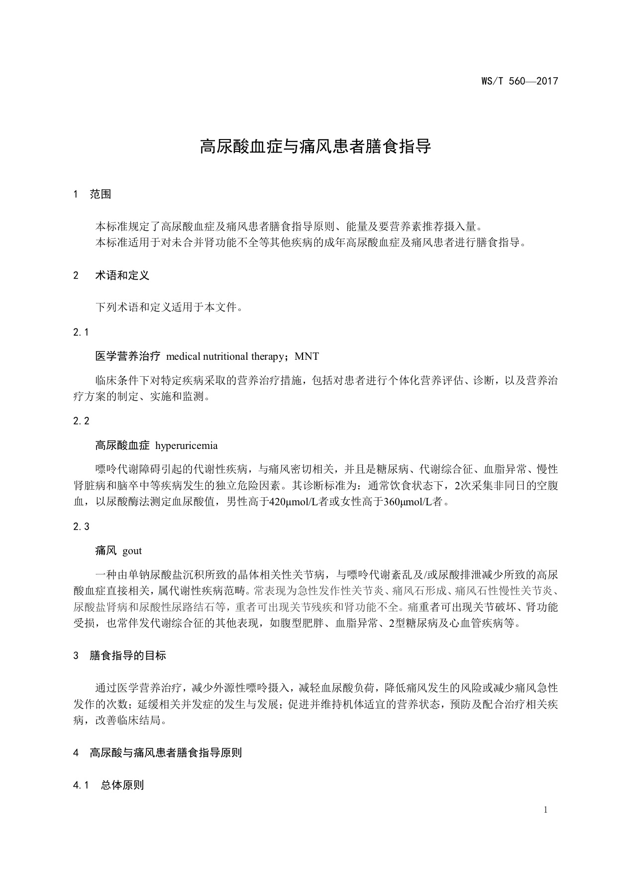标准名:高尿酸血症与痛风患者膳食指导