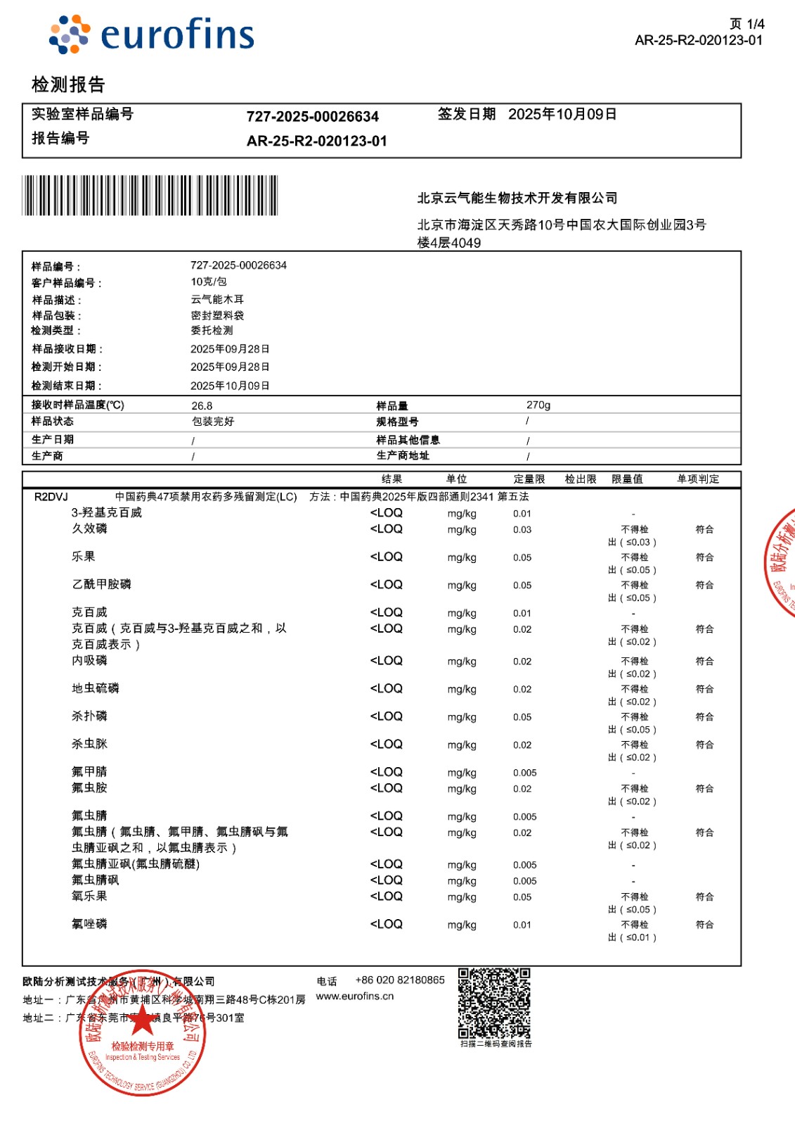 首页 / 云气能资讯 / 报告 I 云气能木耳农残项目检测报告